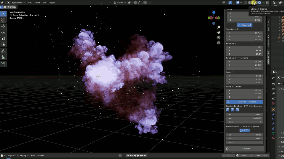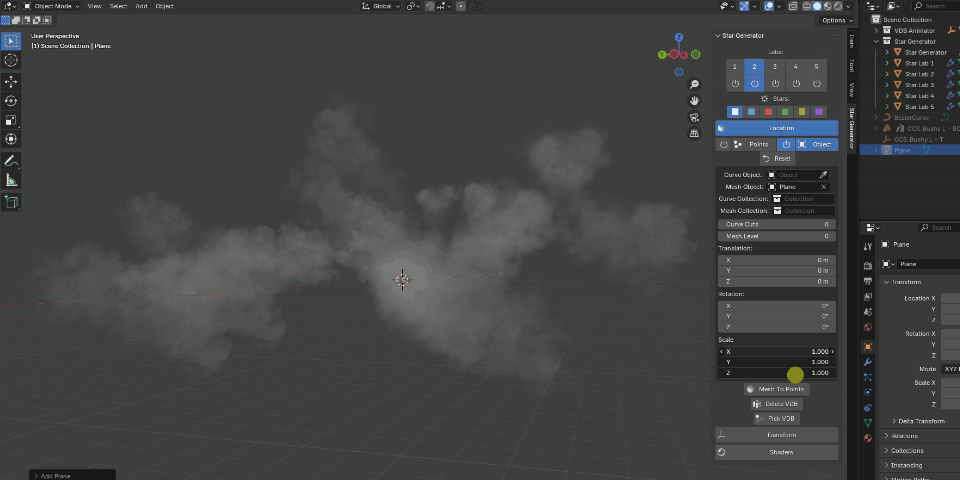 This Addon is based on the "Star Generator" functions from the "VDB Animator" Addon