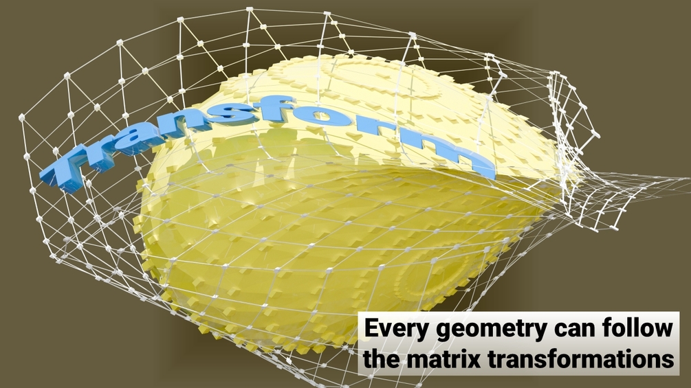 • lets every object follow the current matrix and thus expands the editing options for such geometries and the possibilities for animations with such geometries