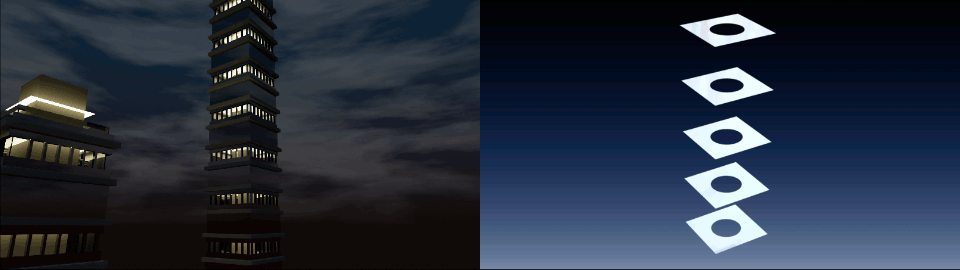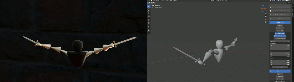 Formations can also be used as cutting tools. Cut objects follow the matrix transformations